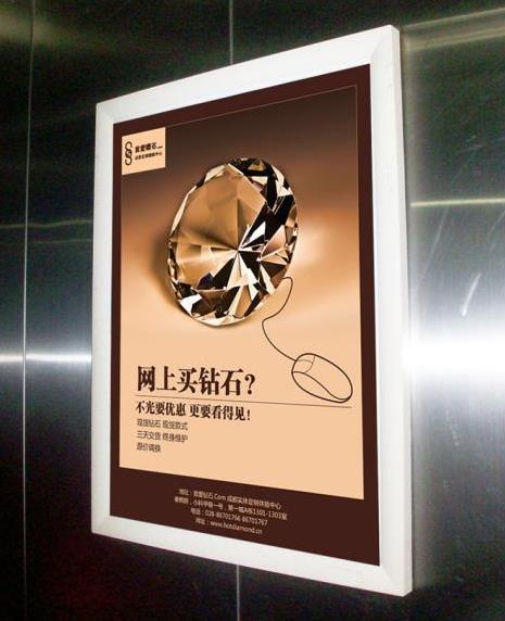 電梯框架廣告是指電梯轎廂內(nèi)的廣告框,一般用來安裝廣告海報,起到廣告作用。電梯廣告框架是生活中最常見的電梯廣告類型,也最為普遍的類型,通常在商場、小區(qū)電梯內(nèi)是常常可以看見的一種廣告方式。在投放此類廣告商一定要在海報設(shè)計上富有創(chuàng)意,采用多圖少字的設(shè)計,信息量充足,這樣才能達(dá)到傳播的效果。
