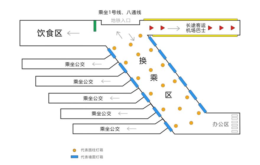 備注:一層是直接坐公交車區域,乘客從二層地鐵口出來經過換乘大廳直接在一層乘坐公交車,