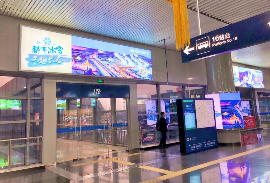 二層換乘大廳,廣告環境干凈整潔,畫面效果統一,極具視覺沖擊力
