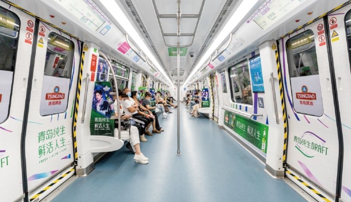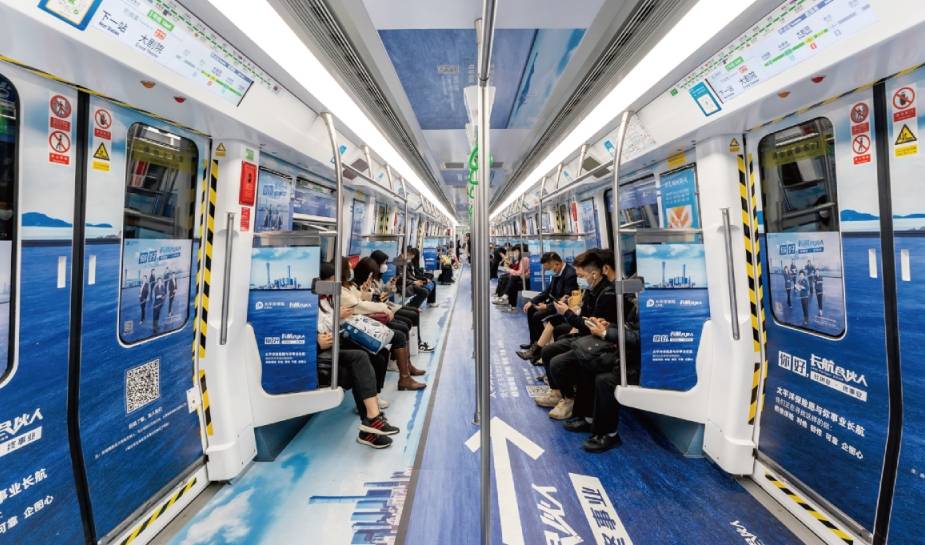 包含車廂看板、車窗貼、車門貼和車椅側貼,強曝光深觸達,實現地鐵乘客全覆蓋列車的包圍感空間,為乘客打造沉浸式互動體驗,品牌信息高效傳達,達到廣告深度傳播的效果。
