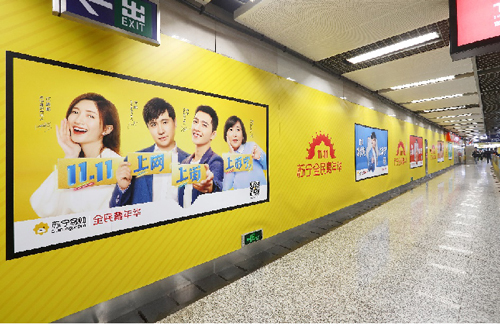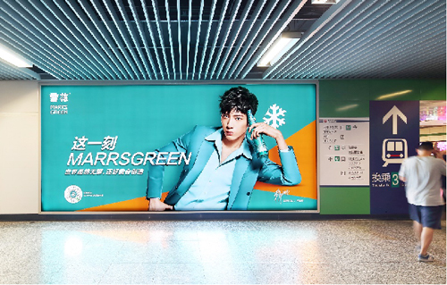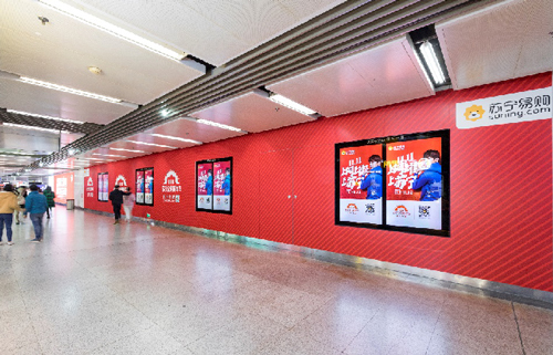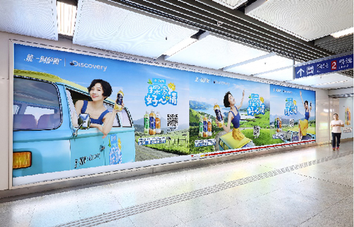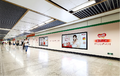 | 創(chuàng)意媒體-南京地鐵新街口站20號品牌通道廣告 線路:1、2號線 組合形式:100㎡頂天立地墻貼 媒體費(元/52周):350,000 制作方式:寫真噴繪 制作費(元/次):30,000 |