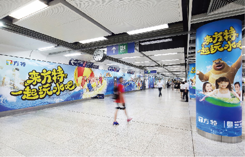 | 創(chuàng)意媒體-南京地鐵竹山路站社區(qū)站廣告 線路:1號線 組合形式 :站廳包柱8面+玻璃貼38塊 媒體費(元/4周):180,000 制作方式:寫真噴繪 制作費(元/次):16,800 |