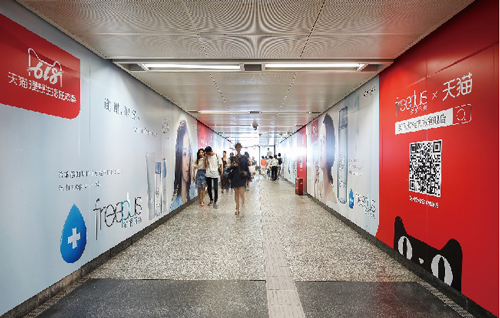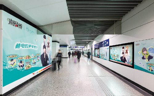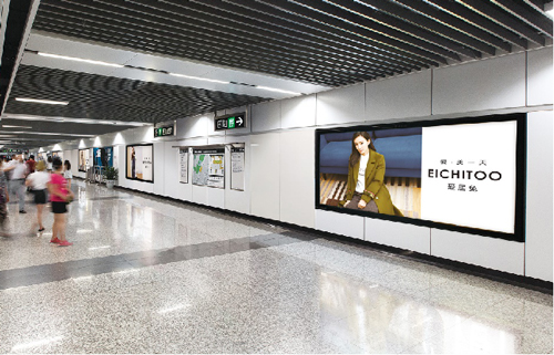 | 創(chuàng)意媒體-南京地鐵新街口站8號品牌通道廣告 線路:1、2號線 組合形式:73.34㎡ 墻貼 媒體費(元/52周):600,000 制作方式:UV寫真燈布 制作費(元/次):22,002 |
