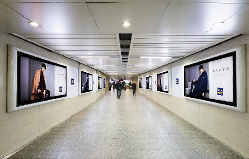| 電子媒體-南京地鐵大行宮站動感長廊廣告 組合形式:A(近2號出入口):3組(6塊)雙聯(lián)65寸高清液晶顯示屏 +58.61㎡頂天立地墻貼+12封燈箱20套裝 B(近3號出入口):3組(6塊)雙聯(lián)65寸高清液晶顯示屏 +68.8㎡頂天立地墻貼+12封燈箱20套裝 媒體費(元/52周):400,000 制作方式:UV寫真燈片+寫真噴繪+電子動畫 制作費(元/次):39,083(墻貼+燈片)、42,140(墻貼+燈片) |
