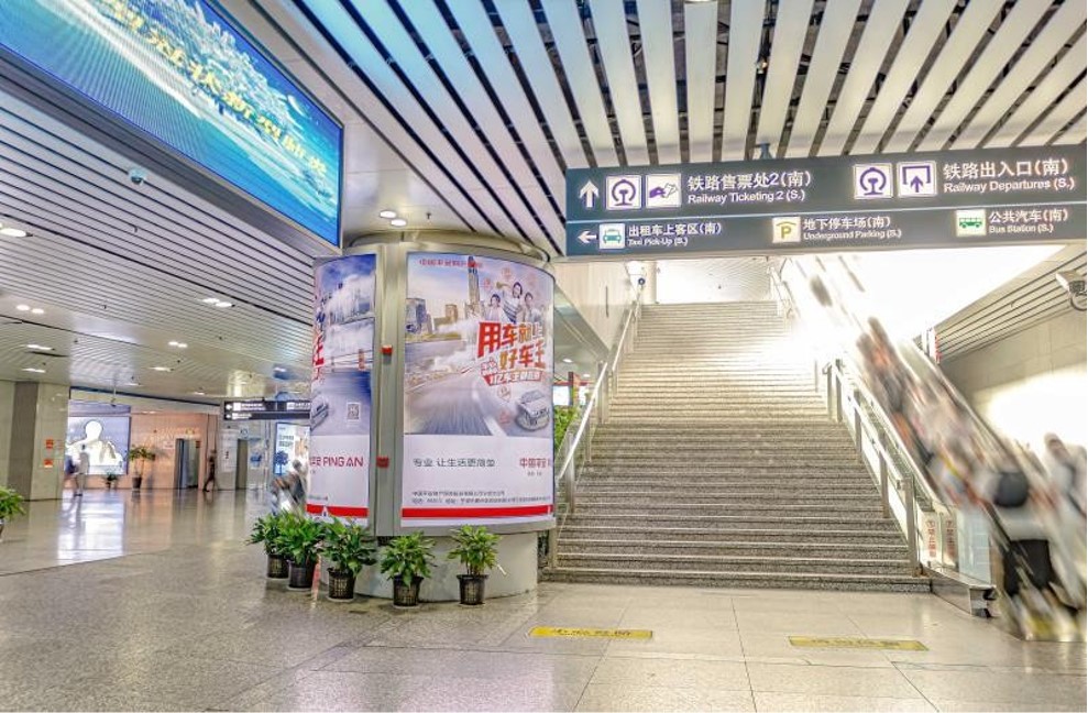 寧波高鐵站燈箱廣告-南廣場到達層南廣場通道圓柱燈箱廣告