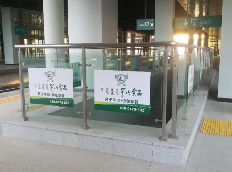 通遼站北出站扶梯、出站廳圍欄玻璃貼廣告