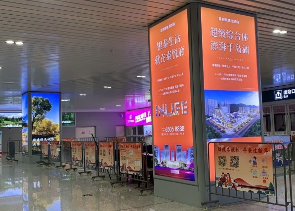 千島湖站出站廳包柱燈箱廣告
