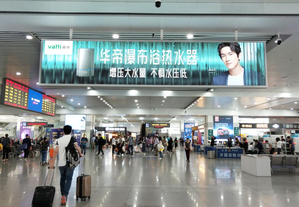 | 出發層候車大廳通道雙面吊桿燈箱 · 3幅 媒體尺寸(寬x高x面):26.6㎡ (7.97m ×1.67m × 2面) 投放形式:1幅/組 媒體價值: 1、此媒體為候車大廳中間通道燈箱媒體,為候車人群經過的必視媒體,視覺沖擊力強,加深品牌傳播效果; 2、媒體面積大,與人群的視線相垂直,且雙面,覆蓋人群更廣。 |