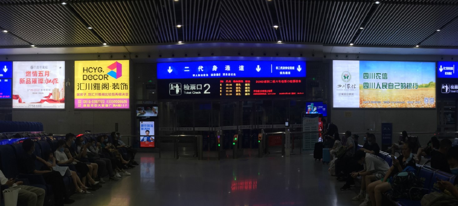 媒體位置:綿陽高鐵站到達出站檢票口上方