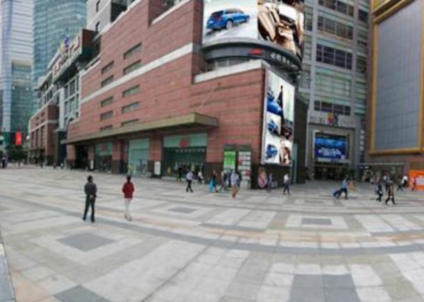 正佳廣場東北門,正佳廣場主入口之一,天河路與體育東路交匯處,BRT與地鐵線交匯于此,路段人車流巨大。