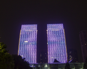 溫州地標物華天寶—發展大廈立面雙子屏led廣告