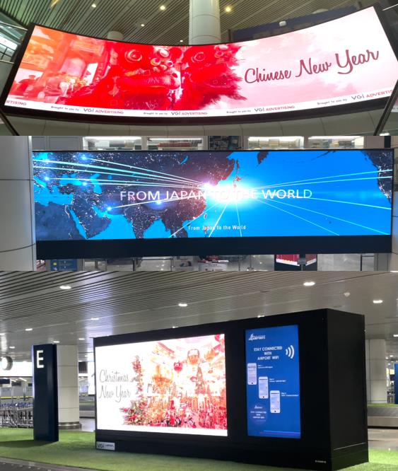 巨大的屏幕,100%的到達旅客在行李傳送帶前等待和進入著陸大廳時都可以看到