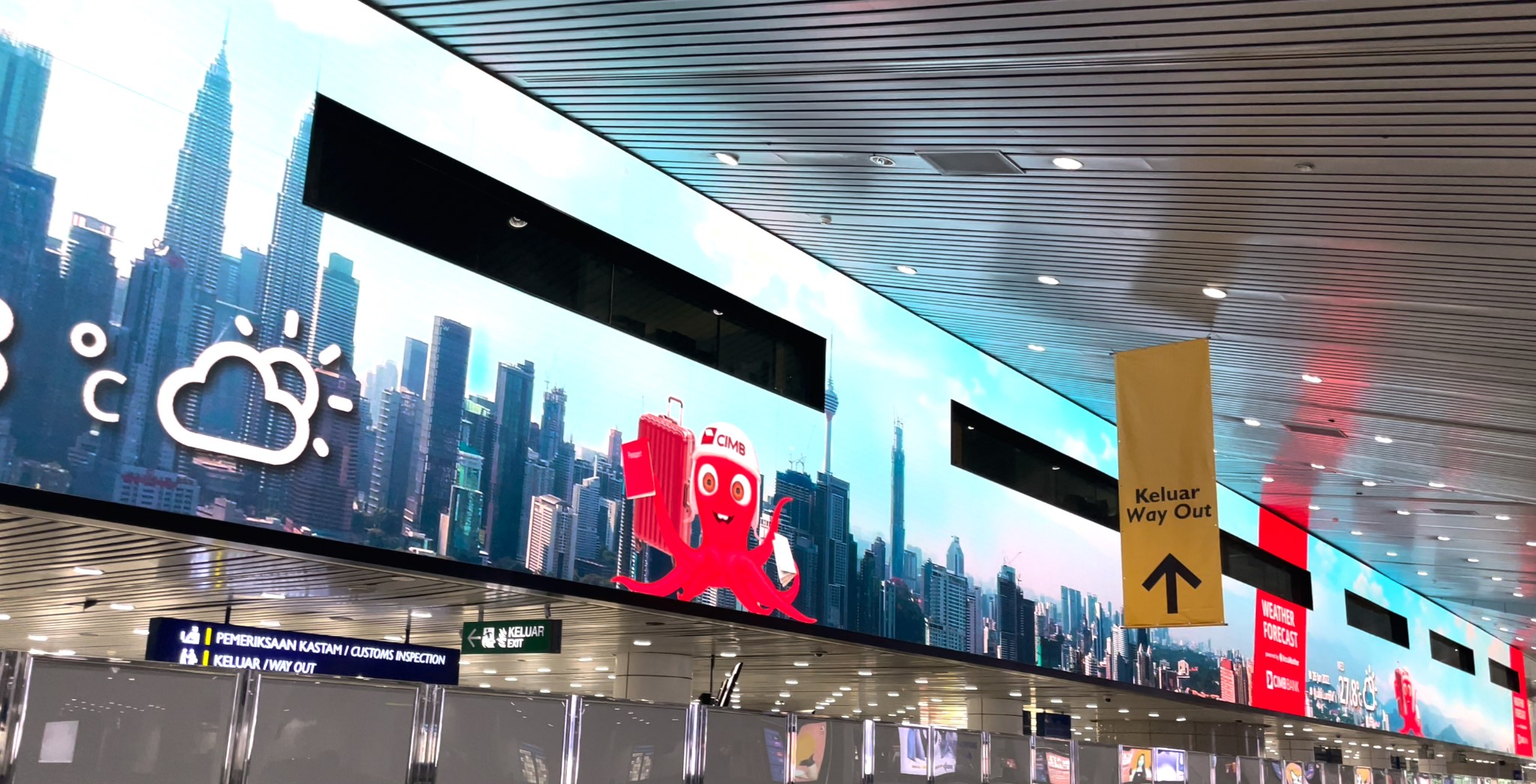 馬來西亞機場廣告-吉隆坡國際機場國際抵達大廳led廣告
