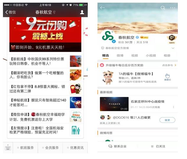 春秋航空航前/后資源——多種社交平臺推廣,讓春秋粉絲直面了解品牌
