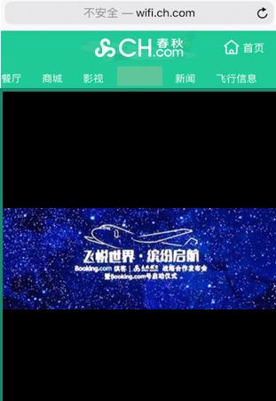 春秋航空空中Wi-Fi連接子版塊包含動態、靜態的展示廣告,視頻廣告及不同主題的內容合作。
