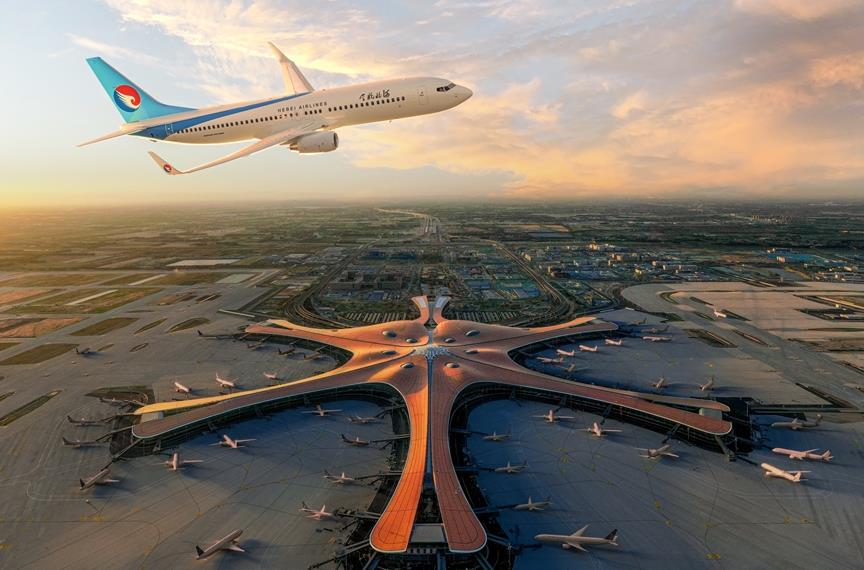 北京大興國際機場(Beijing Daxing International Airport,IATA:PKX,ICAO:ZBAD),位于中國北京市大興區(qū)榆垡鎮(zhèn)、禮賢鎮(zhèn)和河北省廊坊市廣陽區(qū)之間,北距天安門46千米、北距北京首都國際機場67千米、南距雄安新區(qū)55千米、西距北京南郊機場約640米(圍場距離),為4F級國際機場、世界級航空樞紐、國家發(fā)展新動力源。