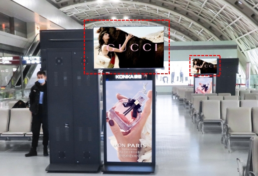2F國內(nèi)出發(fā)到達(dá)混流區(qū)、1F國內(nèi)遠(yuǎn)機位出發(fā)候機區(qū)電子刷屏廣告