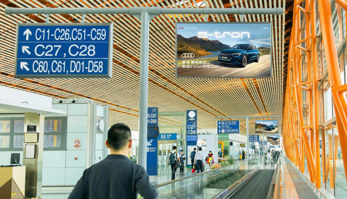 北京首都機場led大屏廣告-T3航站樓C樓出發步道上方LCD廣告