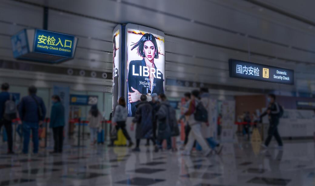 北京大興機場廣告-F3國內(nèi)安檢區(qū)三面豎式燈箱廣告