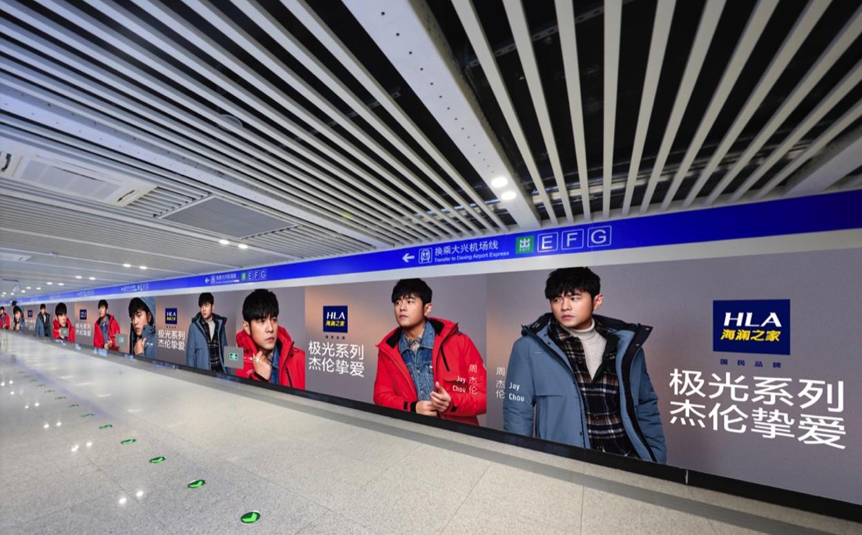 通道狹長,超大墻貼超長面積發(fā)布,使得廣告具有超長觸達時間,為品牌傳播提供有力保障