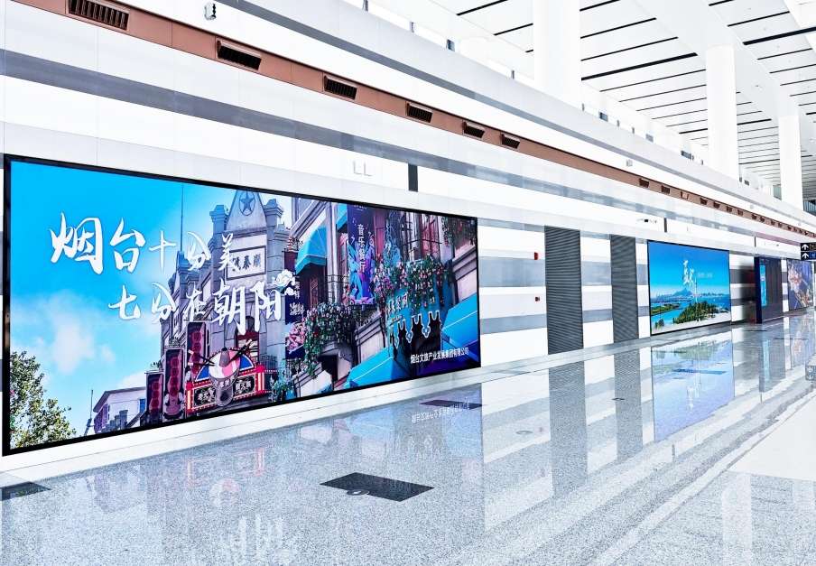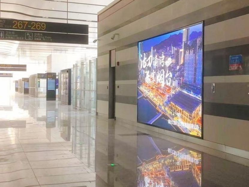 煙臺機場廣告-出發大廳安檢正迎面led廣告