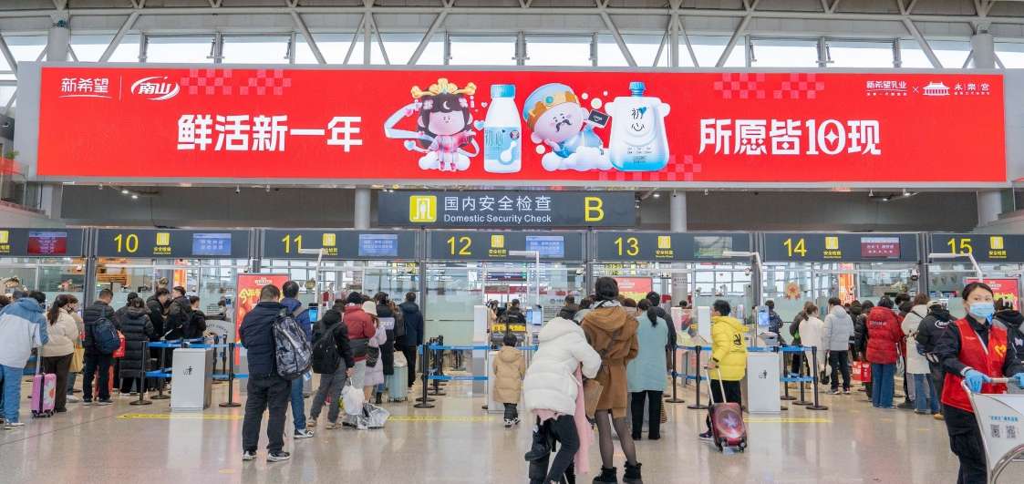 旅客與媒體近距離接觸,四周環(huán)境干擾少,空間開闊明亮,品牌印象深刻。