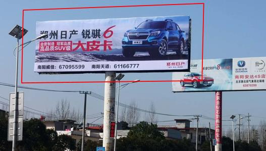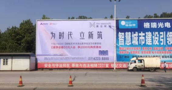 | 媒體形式: 固定廣告牌 媒體規格 :橫33*6.5m=215㎡ 媒體說明:南陽火車站,南陽長途汽車站,公交總站三站交匯之地,可視距離遠,視覺沖擊力強,車流量:10萬/天;人流量:30萬/天。 |