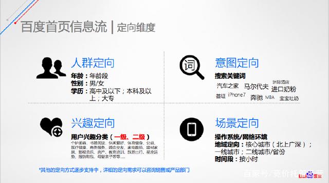 對(duì)于信息流廣告來(lái)說(shuō),人群定向是基礎(chǔ)方向,直接關(guān)乎轉(zhuǎn)化行為,無(wú)論是百度信息流還是今日頭條,都將定向體系介紹得很高大尚,但如果廣告主只是按圖索驥,只能取得皮毛效果!廣告主應(yīng)該結(jié)合自身的情況量身定制定向方案并不斷的測(cè)試調(diào)整。