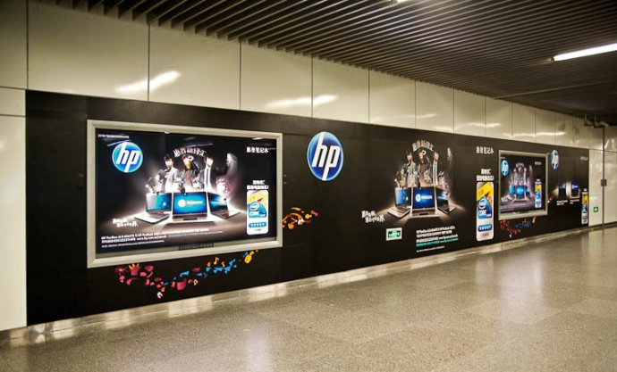 月臺廣告和地下通道廣告。龐大多節的內部車廂以及超長的換乘通道的墻壁空間,再加上燈火通明的候車月臺,為北京地鐵廣告發布提供了