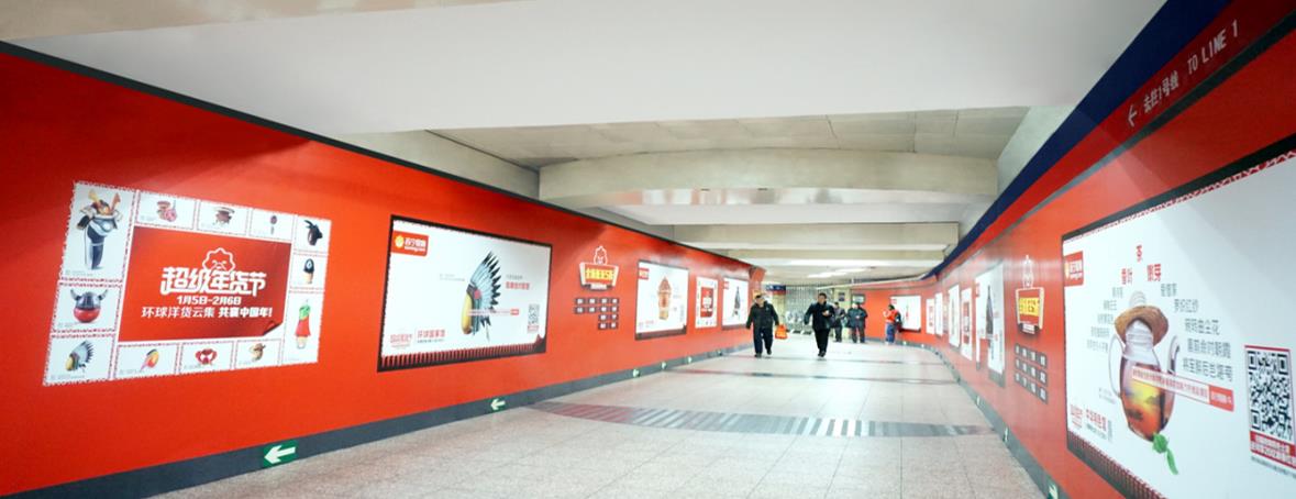 大型品牌區(qū)域墻貼位于地鐵通道走廊,曝光率極大,極據(jù)震撼力、影響力、沖擊力!大型企業(yè)品牌曝光極線上二次傳播的必備武器。價(jià)格居高