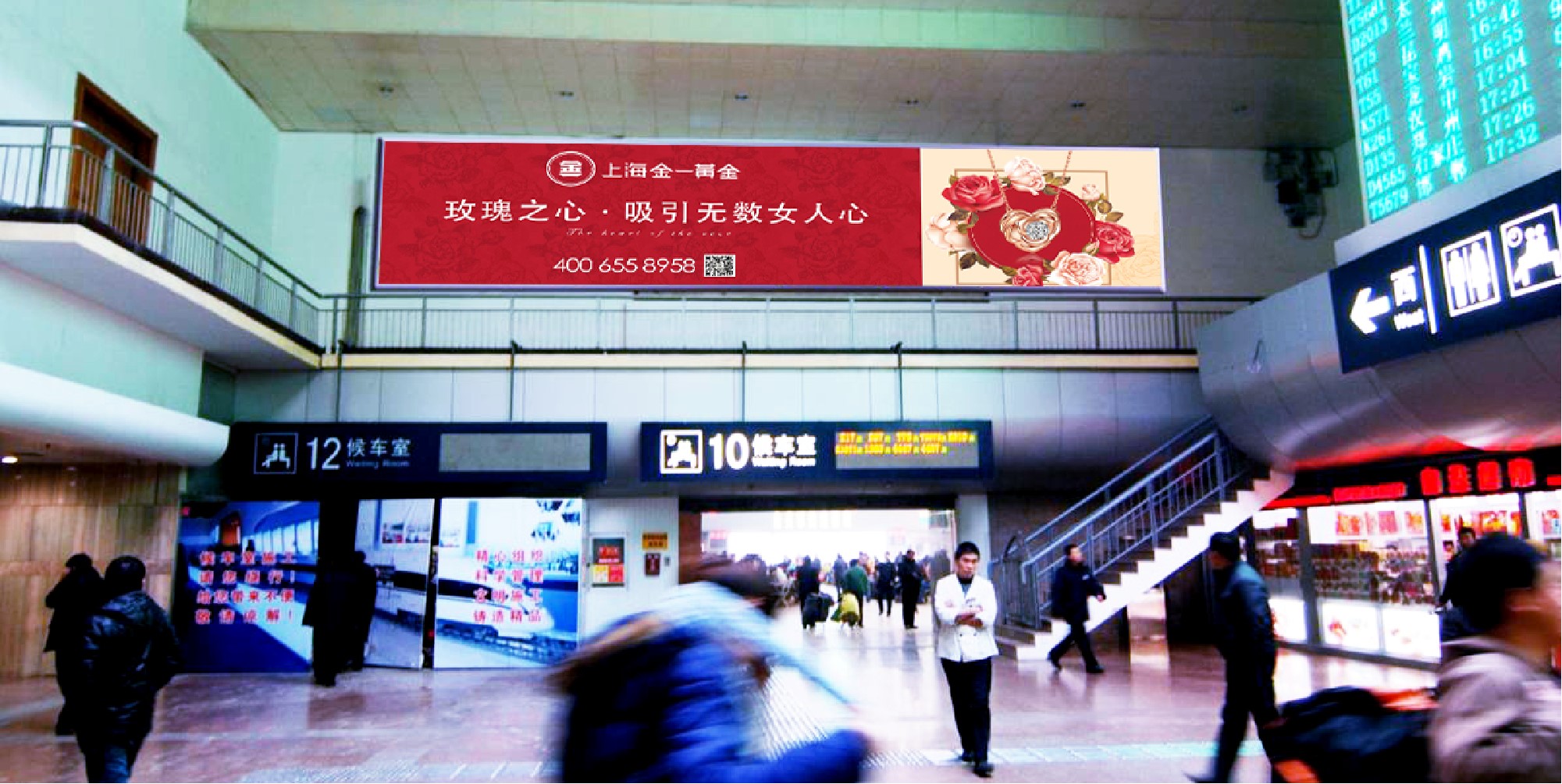 媒體優(yōu)勢:覆蓋所有進站人群,彰顯品牌實力。1、進站必經(jīng),強制閱讀——該媒體位于北一層進站大廳,強制覆蓋所有進站人群,到達率100%。 2、大畫幅展示——巨幅畫面凸顯品牌氣勢,彰顯品牌實力。