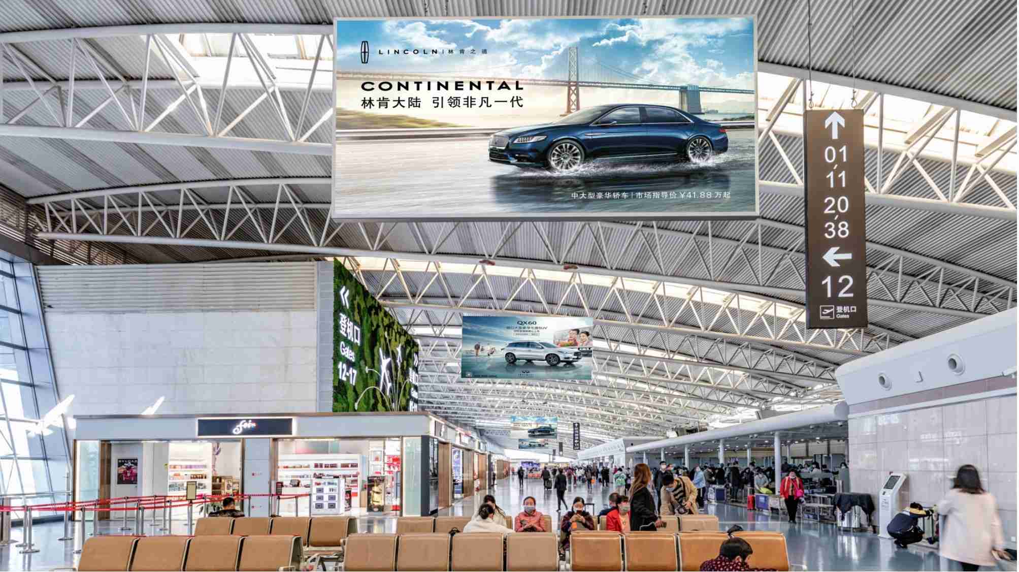 西安咸陽(yáng)機(jī)場(chǎng)T2航站樓國(guó)內(nèi)出發(fā)懸掛燈箱廣告,萬(wàn)事成傳媒