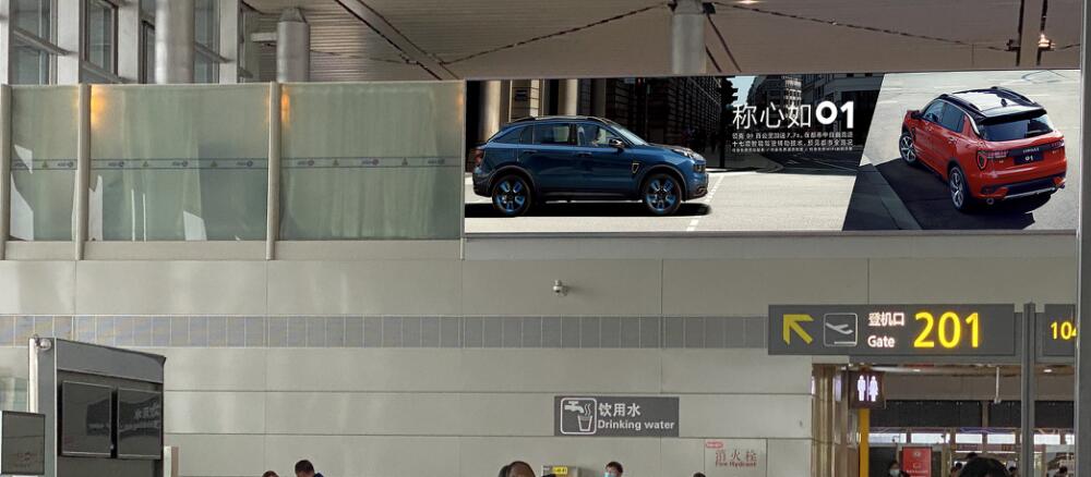 媒體參數:T2航站樓出發指廊墻面燈箱