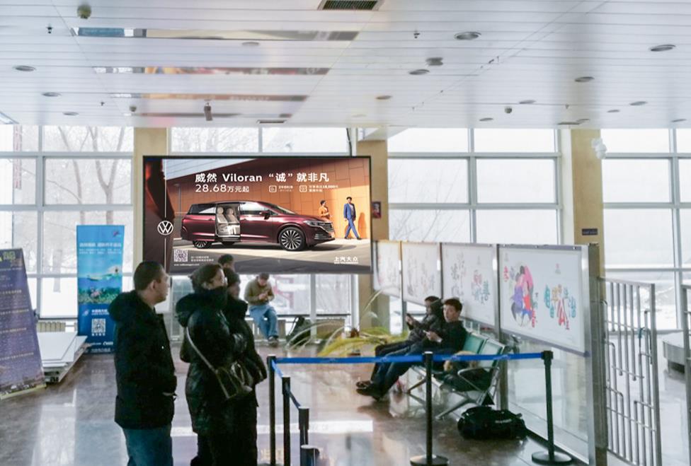克拉瑪依機(jī)場一層出發(fā)到達(dá)混合大廳led廣告,萬事成傳媒