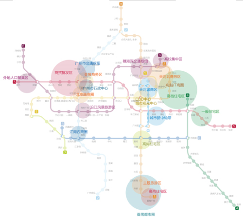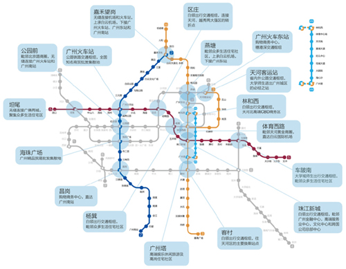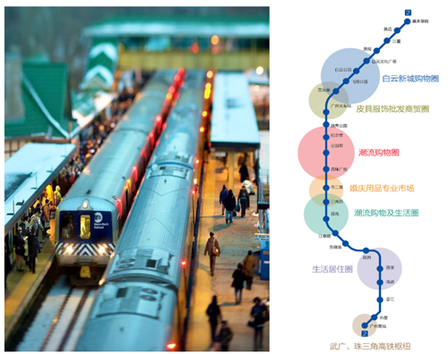 新興商圈在地鐵沿線璀璨綻放:廣佛都市圈、白云新城、南站高鐵商圈、天河東、番禺市橋等