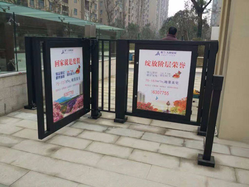 其社區門禁廣告主要用于社區出入大門口、商業區出入大門口等一起需要控制人流出入的場所,因其在傳統的鐵藝門上增加了獨特廣告燈箱,其夜間獨特的燈光效果。