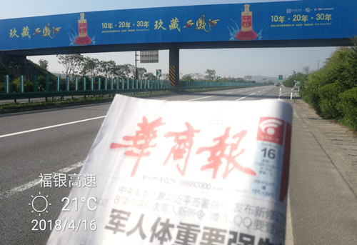 受眾路段:福銀高速 發布形式:高密度噴繪布 發布期限:一年發布檔期:2017/11/20