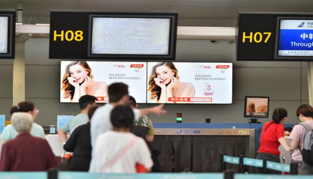 杭州機場電子屏廣告   位置:T3國內安檢口上方