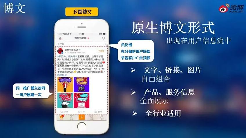 微博廣告類型很多,如開屏貼片廣告、信息流廣告、賬戶推廣、板塊植入、關(guān)鍵詞廣告等,以不同的方式呈現(xiàn),具有不同的特點(diǎn)和優(yōu)勢。