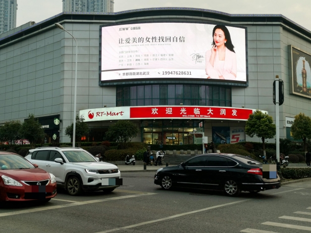 武漢戶外地標LED廣告【解放大道大潤發(fā)墻體LED大屏】