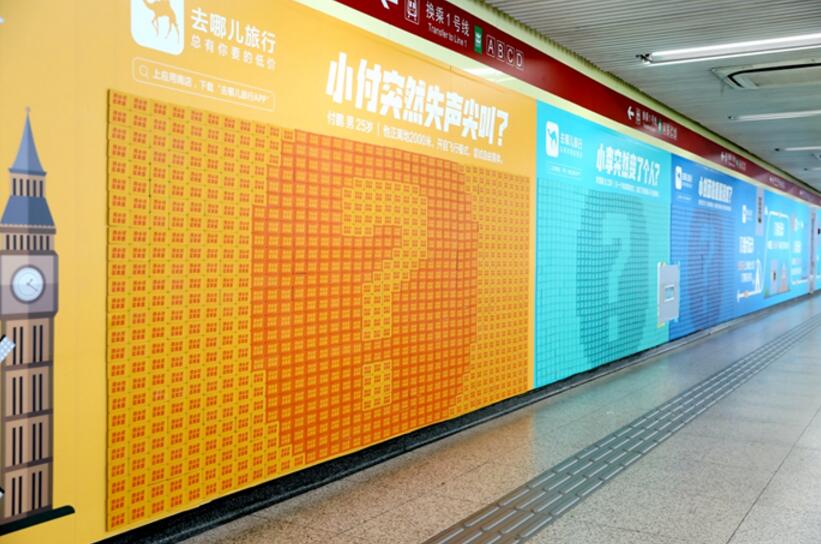 7月1日,去哪兒網(wǎng)投放北京東單地鐵墻體廣告,換上了長達(dá)百米的“尋人啟事”海報,吸引了大批行人駐足觀看、互動。