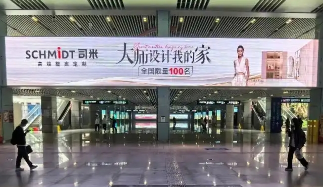 今年51假期,高鐵旅客流量再創(chuàng)歷史新高,SCHMIDT司米品牌傳播借勢(shì)而上。基于高鐵廣告?zhèn)鞑ジ吒采w面與權(quán)威性等特征,在交通樞紐高端媒體上展開戰(zhàn)略式滲透布局,進(jìn)一步加深全國(guó)消費(fèi)者對(duì)SCHMIDT司米“高端整案定制”品牌定位的認(rèn)知與了解。